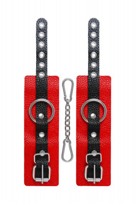 Мягкие, красные, кожаные наручники с люверсами на жёстких, чёрных ремешках могут стать стильным аксессуаром, а могут послужить вашим целям по своему прямому назначению. Частичное обездвиживание и невозможность двигать руками дают вам полную власть над партнером – взрослые игры для взрослых. Наличие двух колец и карабинов, соединенных между собой металлической цепочкой, позволяет использовать изделие как раздельно – аксессуар-манжеты, так и как наручники для фиксации. К широким металлическим кольцам также можно присоединить и другие аксессуары при помощи карабинов. Благодаря универсальному размеру наручники могут использоваться и мужчинами, и женщинами. Размер легко регулируется с помощью металлических пряжек, органично вписывающихся в общий стиль.