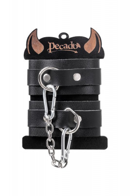 Аксессуар декорирован качественной фурнитурой, благодаря которой, при необходимости, его легко снять. Соединяются между собой с помощью короткой стальной цепочки и двух колец с карабинами. При правильном использовании не оставляют следов на теле. А особый аромат натуральной кожи придает пикантности сексуальному атрибуту. Подходит как для начинающих пар, так и для ценителей БДСМ-игр. Погрузитесь в мир пикантных удовольствий! Вместе с Pecado.