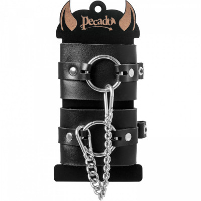 Крепкие и брутальные наручники от российского производителя Pecado привнесут в интимную жизнь новые ощущения! С их помощью легко обездвижить руки партнера и зафиксировать их в нужном положении. В этой модели используется толстая натуральная кожа ручной выделки. Экологичный, прочный материал отличается особой износостойкостью, не растягивается. Оборотная сторона аксессуара шероховатая, но приятная к телу. Наручники декорированы качественной никелированной металлофурнитурной серебристого цвета. При правильном использовании не натирают и не доставляют дискомфорт. Подходит и мужчинам, и женщинам. Если отсоединить карабины с цепочкой, аксессуар можно использовать как браслет в стильном образе. Раскрасьте свои ролевые игры новыми впечатлениями! Вместе с Pecado.