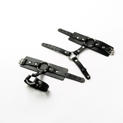 Черные наручники выполнены из натуральной кожи высокого качества с дополнительным креплением на кисть руки.
