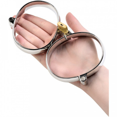 Металлические наручники - строгий девайс для ограничения свободы. Эта модель фиксирует запястья близко друг к другу и закрывается на замок, ключ от которого хранится у Господина или Госпожи.