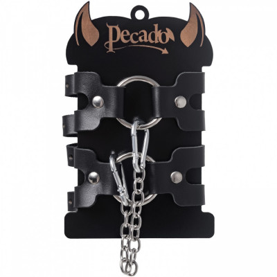 Надежно фиксируется с помощью качественной, стальной фурнитуры. Не расстегивается при активном использовании в процессе игр. Благодаря двум карабинам на цепи, и металлическим кольцам, манжеты соединятся вместе. При необходимости, можно использовать как более длинные цепи, так и другие аксессуары. Подходит как для мужчин, так и для женщин. Погрузитесь в мир особых чувств и желаний! Вместе с Pecado.