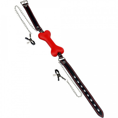 Кляп-трензель в виде косточки с зажимами для сосков TOYFA Theatre арт. 708027