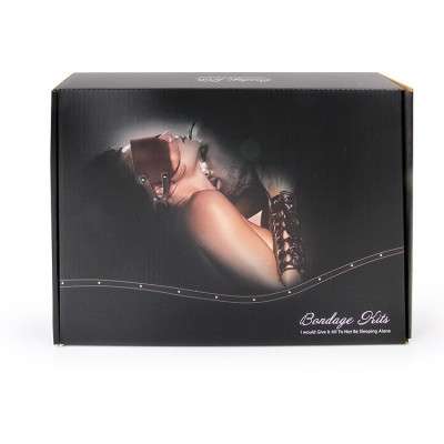 На поверхности наручников, оков, ошейника и маски расположены декоративные нашивки в военной тематике. Набор упакован в большую коробку.