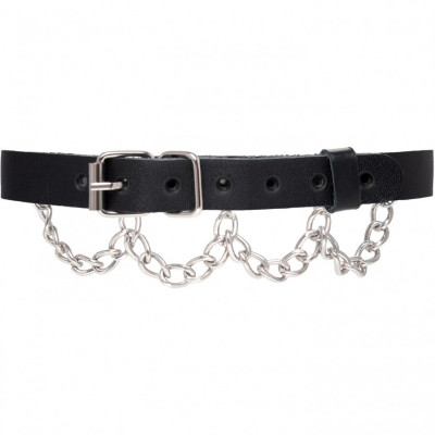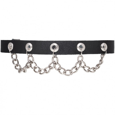 Аксессуар хорошо фиксируется и не спадает в процессе ролевых игр. При необходимости легко снимается. Спереди чокер декорирован металлической цепью. Она игриво позвякивает и движется в такт тела, а также.