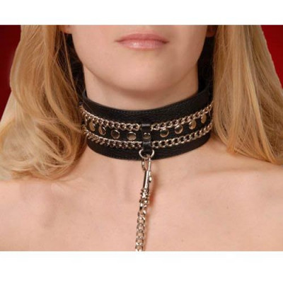 Ошейник кожаный с цепочкой-поводком с карабином арт. 3101-1