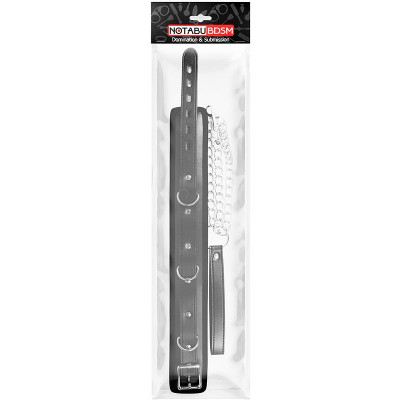 Великолепный БДСМ-аксессуар для любителей нестандартных эротических забав. В комплект входит ошейник с возможностью регулировки размера с помощью ремешков и металлическая цепочка-поводок с ручкой-петлёй, который при желании можно отстёгивать. Внутренняя поверхность ошейника имеет мягкую накладку, препятствующую натиранию кожи. БДСМ-аксессуар прост в применении, не требуют специального ухода.
