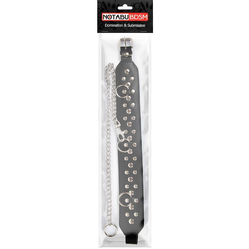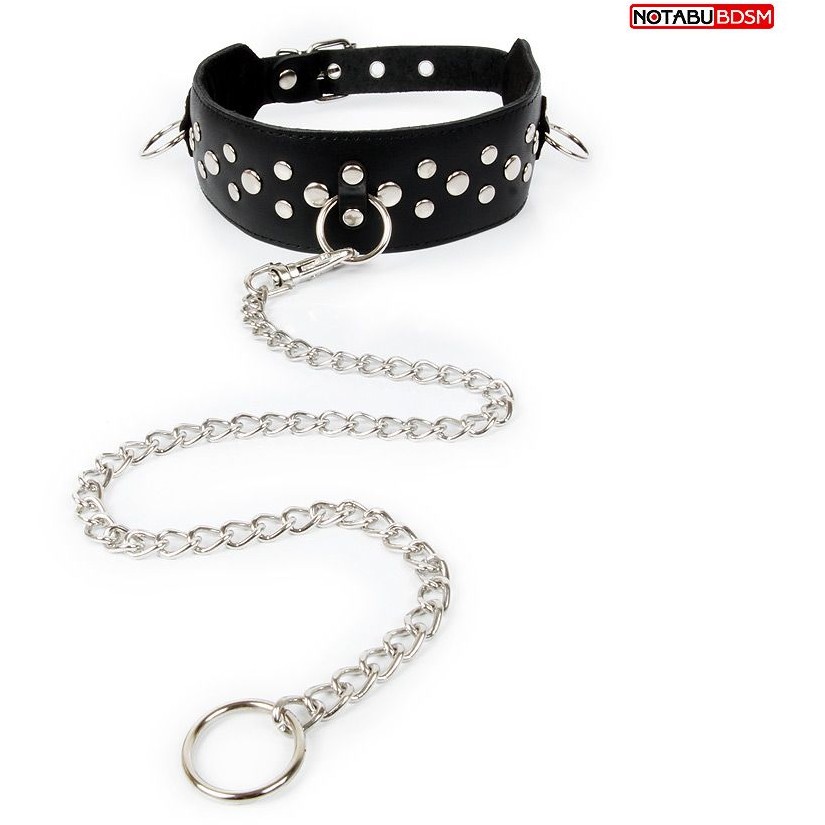 Великолепный БДСМ-аксессуар для любителей нестандартных эротических забав. В комплект входит ошейник с возможностью регулировки размера с помощью ремешков и металлическая цепочка-поводок с кольцом, который при желании можно отстёгивать.