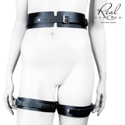 Широкий ремень-пояс фиксируется на талии, более узкие ремни-оковы – на бёдрах. Металлические застёжки регулируют размеры изделия, усиливают или ослабляют натяжение. Пояс и оковы соединяются между собой ремешками с карабинами, что позволяет менять положение гартеров на теле или отсоединять их друг от друга.