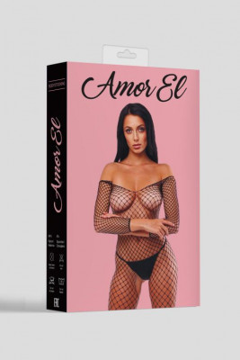 Estela - боди-комбинезон с рукавами 3/4 и открытым доступом. Дизайн выполнен в виде крупной сетки. Его можно носить как полностью на плечах, так и приспустить на руки.