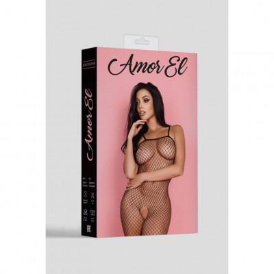 Боди-комбинезон на бретельках с открытым доступом. Дизайн выполнен в виде крупной сетки.