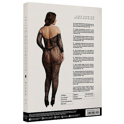 Сексуальный боди-комбинезон с рукавами 3/4 и открытым доступом. Дизайн выполнен в виде сетки с кружевным рисунком. Его можно носить как полностью на плечах, так и приспустить на руки. Кетсьюит имеет открытый шаговый шов.