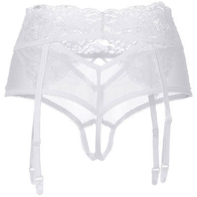 Эротические трусики-пояс Erolanta® Iveta из эластичной сетки со вставками кружева, с декоративными вырезами. Имитация пояса со свободным ажурным краем. Атласный бантик спереди. Высокая посадка. Регулируемые пажи.