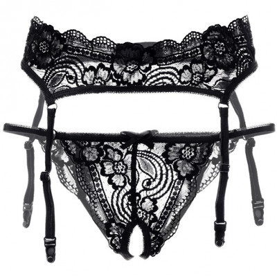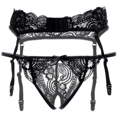 Эротический комплект Erolanta® Deborah: пояс для чулок и трусики, эластичные, кружевные, с ажурным краем. Трусики с атласными бантиками. Пояс с регулируемой застежкой и пажами.