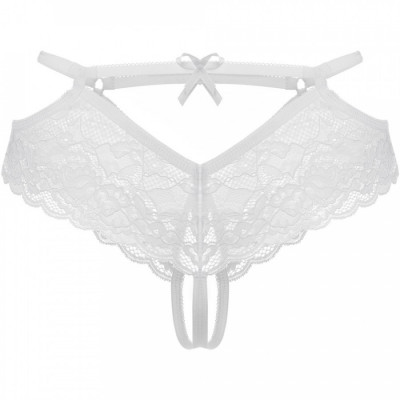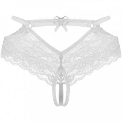 Эластичное кружево рисует волнующий контур бедер. Тонкие перемычки, украшенные миниатюрными кольцами и игривым атласным бантиком, расставляют интригующие акценты. Пикантный вырез в интимной зоне подогревает желание и позволяет наслаждаться игрой, не снимая при этом трусики.