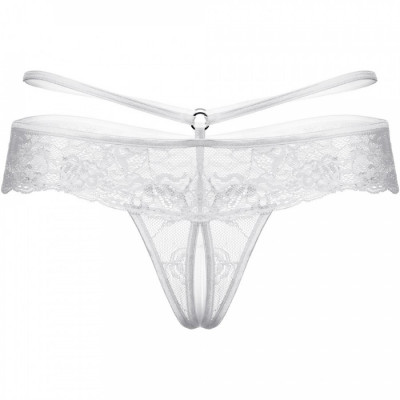 Кружевные стринги с открытым доступом. Оригинальное сочетание нежного кружева и переплетения тесьмы.