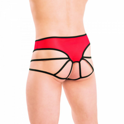 Красные мужские трусы с черной окантовкой и тонкими бретелями по бокам будоражат воображение.