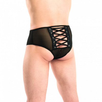 Мужские трусики с элегантной шнуровкой сзади приятны на ощупь, не изменяют форму после многократных использований. Материал не линяет и не выцветает.