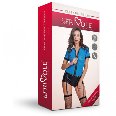 Милый костюмчик женщины-полицейского, способный возбудить мужчину до потери самообладания. Комплект включает в себя легкое боди с двусторонней застежкой-молнией, эффектный пояс для чулок и чулки-сеточку.