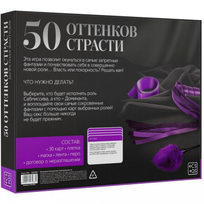 Подпишите контракт о неразглашении и выберите желаемую роль. Доминант вступит в права владения телом и желаниями партнёра, а Сабмиссиву предстоит покорно подчиняться и… сдерживать крики удовольствия. Воплотите самые сокровенные фантазии Закройте глаза, представьте, как лёгкое перо едва касается вашего тела, а тугая лента резко связывает руки… Воплотите все сценарии, что предложит игра. Предметы из набора помогут достичь пика удовольствия.