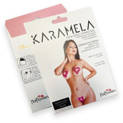 Комплект Karamela Tapa Sexo Comestivel Menta состоит из 2-х пэстисов на грудь и накладки на лобок, которые абсолютно безопасны при лизании, посасывании и глотании.