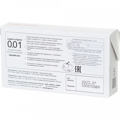Презервативы из полиуретана в среднем в 3-4 раза тоньше, и в 3-6 раз прочнее, чем обычные латексные презервативы. 0.01 — это новое (третье) поколение полиуретановых презервативов Sagami Оriginal. Реальная толщина стенки презерватива теперь в шесть раз тоньше человеческого волоса! Отличная теплопроводность и гладкость поверхности, в результате, тепло партнера передается так, как если бы презерватива вообще не было. Полиуретан является биосовместимым материалом, но не содержит протеинов, как латекс, и идеально подходит в случае аллергии на протеины. Если очень коротко, то Sagami Original — это практически неощутимые и самые надежные презервативы в мире.