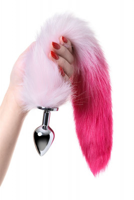 Анальная втулка с бело-розовым хвостом Metal by TOYFA арт. 712028-M