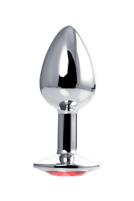 Металлическая втулка с ограничителем украшена стразом рубинового цвета. Подходит для начинающих и практикующих анальные ласки.