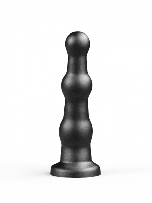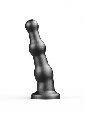 Плаг (анальная пробка) платинового цвета, среднего размера с изгибом. Небольшая присоска. Сделан из эластичного полужесткого материала. Упруго сгибается.