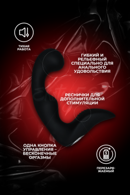 Массажер простаты – это идеальный девайс для любителей анальных игр, который подарит самые яркие оргазмы. Пробка имеет изогнутую форму, которая подстраивается под особенности твоей анатомии, чтобы максимально простимулировать чувствительную зону простаты. Несколько режимов вибрации позволяют настроить свою идеальную волну удовольствия. С помощью этой игрушки анальный оргазм тебе обеспечен!