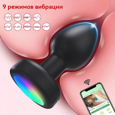 Анальная втулка с вибрацией, светодиодами и управлением приложением арт. AP31-BK-BOX