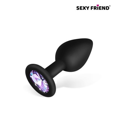 Втулка анальная, L 73 мм D 30 мм, чёрная, цвет кристалла светло-фиолетовый, силикон, арт.SF-70500-15