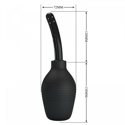 Продолговатая силиконовая груша имеет ребристую текстуру, облегчающую удержанию в ладони. Емкость резервуара составляет 310 мл., чего вполне достаточно для проведения очищающих процедур