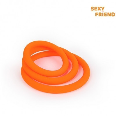 Комплект из трех эрекционных колец Sexy Friend в ярко-оранжевом цвете выглядит очень стильно и эффектно. Аксессуары хорошо заметны на фоне тела и буквально приковывают к себе внимание. Набор позволит поддержать эрекцию и чувствовать себя уверенно во время полового акта. Вы можете использовать кольца по отдельности, либо комбинировать их, подбирая необходимую степень сжатия. Кольца подходят для фиксации основания пениса, а также мошонки.