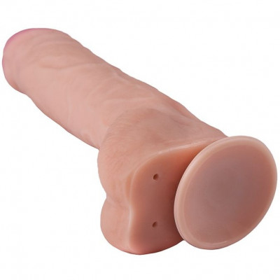 Мощный и возбуждающий фаллоимитатор изготовлен с использованием новейшей технологии протезирования. Внешне он не отличим от настоящего эрегированного полового члена с пышной головкой, упругим телом, украшенным венозной сеточкой и нежной мошонкой. Неоскин, из которого произведена эта игрушка, в точности повторяет структуру кожи. С помощью присоски фаллос можно закрепить на любой ровной поверхности, например, на спинке кровати или на дне ванной.