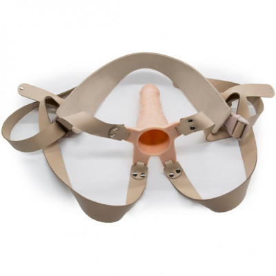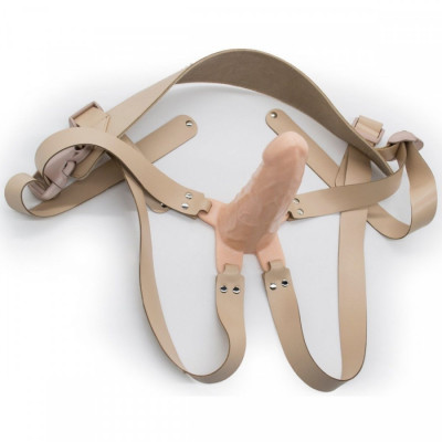 Каркас (пустотелый фаллоимитатор) для мужчин имеет четыре кожаных ремешка для закрепления на теле. Снизу два из них «обходят» мошонку или прикрепляются к полукруглой полимерной петле, которая выполняет функцию комфортной фиксации вокруг яичек.
