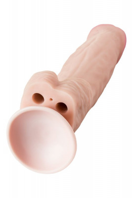 Огромный реалистичный фаллоимитатор телесного цвета на присоске. Имеет форму члена с ярко-выраженной розовой головкой. Необычайно приятный, упругий, рельефный, выполненный из ТПЕ, передающий эффект мягкой реалистичной текстуры кожи, не имеет швов. Имеет ребристую поверхность для дополнительной стимуляции.