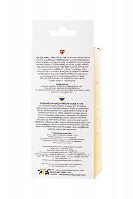 Мастурбатор изготовлен из очень нежного и эластичного материала, совершенно без запаха, не содержит вредных для организма веществ и легко моется обычной водой с мылом. Колба закрывается крышкой, благодаря чему мастурбатор надежно хранится в контейнере.