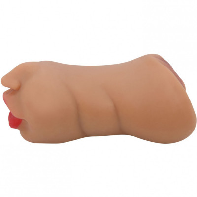 Интимный аксессуар имеет два любовных отверстия: вагину и чувственный женский ротик с подвижным язычком и гландами.