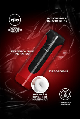 Мастурбатор имеет 7 вращающих режимов, а также турборежим с 300 фрикциями в минуту, который не заставит вас ждать оргазм и эякуляцию.