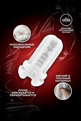 Внутренний вкладыш выполнен из высококачественного силиконового материала, и является безопасным в использовании. Мастурбация будет происходить еще приятнее благодаря рельефной поверхности внутри имитатора, которая предназначена специально для дополнительной стимуляции головки и всего полового члена, что поможет усилить возбуждение и ярко кончить.