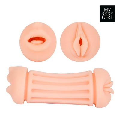 Одна сторона мастурбатора имитирует сочное манящее влагалище, другая - чувственный ротик с игривым язычком. Благодаря мягкому эластичному материалу интимный аксессуар отлично растягивается, принимая форму пениса. Внутренние поверхности изделия имеют рельефную поверхность, что способствует дополнительной стимуляции полового члена.