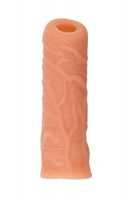 Особенный рельеф в виде многочисленных вен по всему стволу насадки очень хорошо стимулирует зону G, вход во влагалище и деликатно ласкает чувствительные зоны. Дополнительный объем дарит то самое чувство наполненности, увеличивая поток возбуждения. Мужчина тоже будет ощущать стимуляцию за счет давления стенок влагалища на пенис.