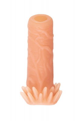 Насадка имеет форму “рукав”, плотно прилегает к пенису, создавая дополнительную толщину и оставляя головку открытой. Это позволяет сохранить чувствительность головки, задерживая эякуляцию. В основании есть отверстие для мошонки, с помощью которого вы надежно зафиксируете насадку на пенисе, не ограничиваясь в активных движениях. Насадка, за счет плотного облегания мошонки и головки, усиливает эрекцию.