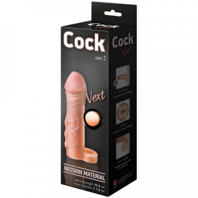 Представляет собой толстый презерватив с полумягкой удлиняющей вставкой перед головкой. Кольцо удерживает фаллоудлинитель за яички и предотвращает соскальзывание. Насадка из материала неоскин обеспечивает прочность, увеличение размера в толщину 30% и длину 2.5 см. Рекомендуется при преждевременной эякуляции, т.к. продлевает время половой близости у мужчины.