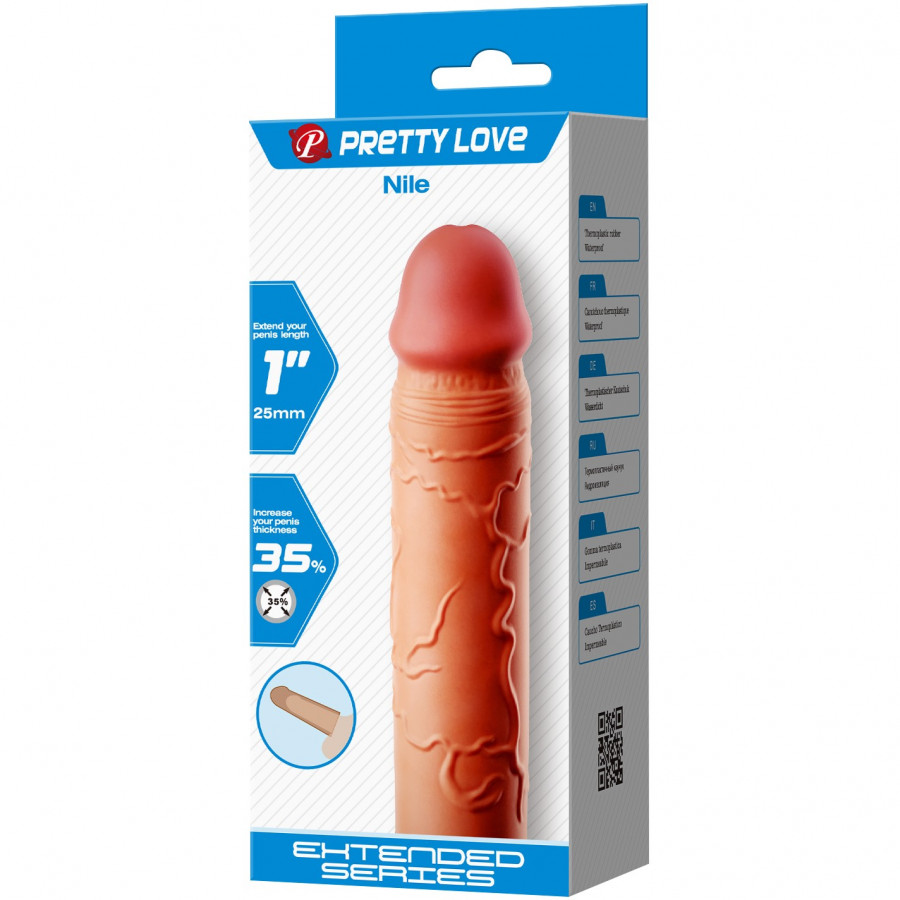 Nile Extended Series от бренда PRETTY LOVE - это пенис-рукав, изготовленный из TPR. Он предназначен для увеличения длины и толщины пениса, добавляя 2.5 см в длину и увеличивая окружность.
