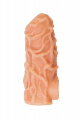 Ярко выраженный рельеф в виде многочисленных выпуклых вен по всему стволу насадки очень хорошо стимулирует зону G, вход во влагалище и настойчиво ласкает чувствительные зоны. Вариативность стимуляции регулируется активным темпом движения вперед-назад и изменением угла проникновения. Дополнительный объем дарит то самое чувство наполненности, увеличивая поток возбуждения. Мужчина тоже будет ощущать стимуляцию за счет давления стенок влагалища на пенис.