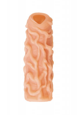 Насадка имеет форму “рукав”, плотно прилегает к пенису, создавая дополнительную толщину и оставляя головку открытой. Это позволяет сохранить чувствительность головки, задерживая эякуляцию. В основании есть отверстие для мошонки, с помощью которого вы надежно зафиксируете насадку на пенисе, не ограничиваясь в активных движениях. Насадка, за счет плотного облегания мошонки и головки, усиливает эрекцию.