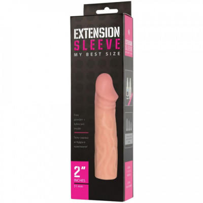 Насадка-удлинитель Extension sleeve имеет натуральный цвет и мягкий реалистичный материал, что позволит незаметно откорректировать длину и диаметр полового органа. В наборе имеются три втулки различной длины, что даёт возможность выбора, увеличиваемой длины по собственному предпочтению. Лёгкое фиксирование насадки, обеспечивает эластичный тянущийся материал, но при этом насадка прочно и приятно обхватывает пенис, доставляя приятные ощущения обоим партнёрам. После использования промыть тёплой водой с мыльным раствором, обработать антибактериальным средством.