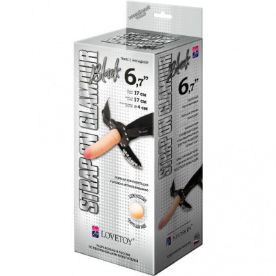 Пояс-трусики с украшением и прямой реалистичной насадкой Strap On Glamour Black арт. 330803